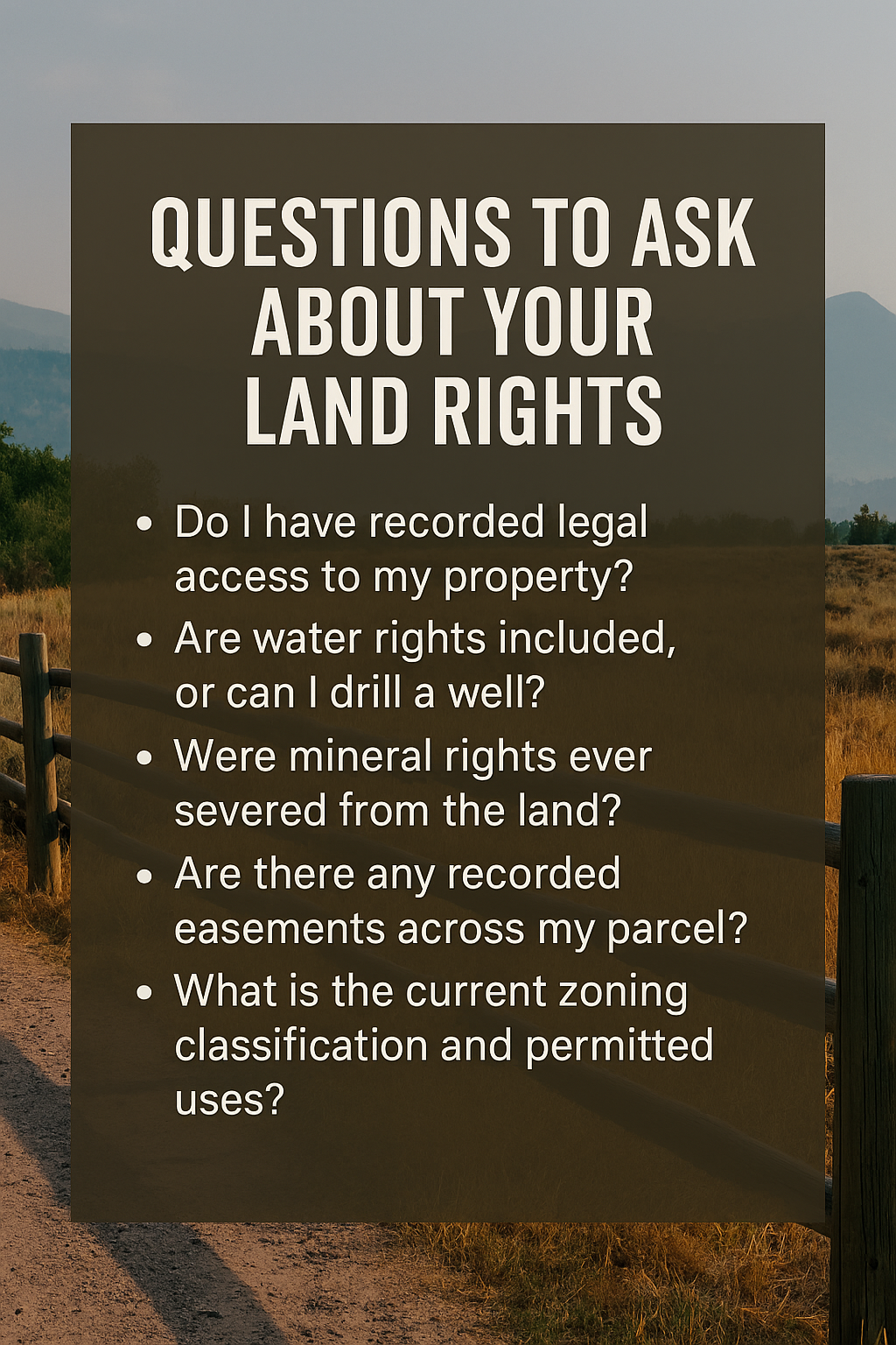 Disclaimer: The information provided in this article is for general informational purposes only and should not be taken as legal, financial, or professional advice. Land ownership laws, zoning rules, and regulations can vary by county and property. Always verify ownership and rights through official county records and consult with qualified professionals—such as attorneys, surveyors, or title companies—before making land purchase or investment decisions.