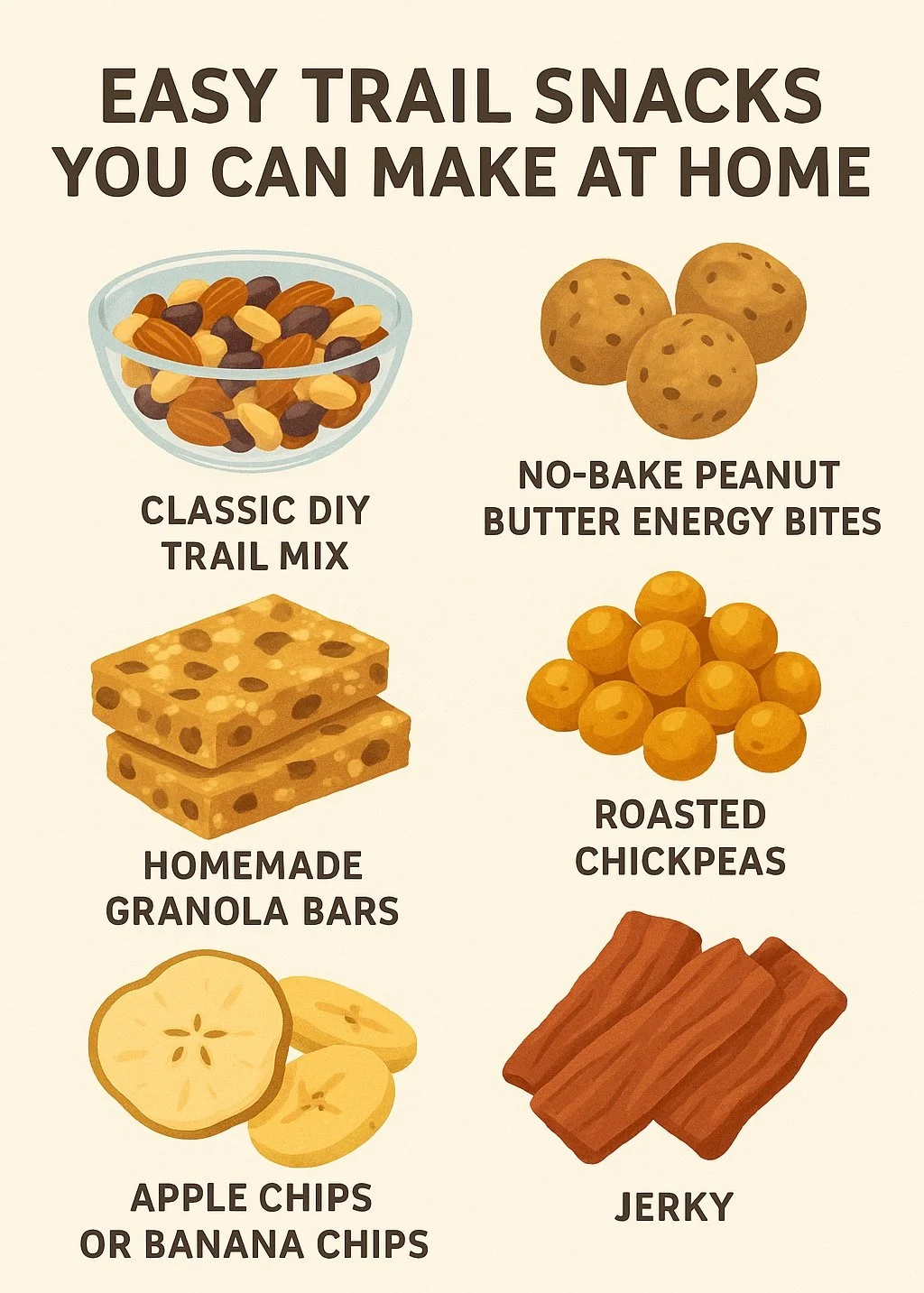 Hitting the trail doesn’t mean you need to rely on overpriced or processed snacks. With just a few simple ingredients, you can prep your own trail snacks that are healthy, affordable, and perfectly packable. Whether you’re hiking, camping, or road-tripping, these DIY options are easy to throw together and keep you fueled outdoors.