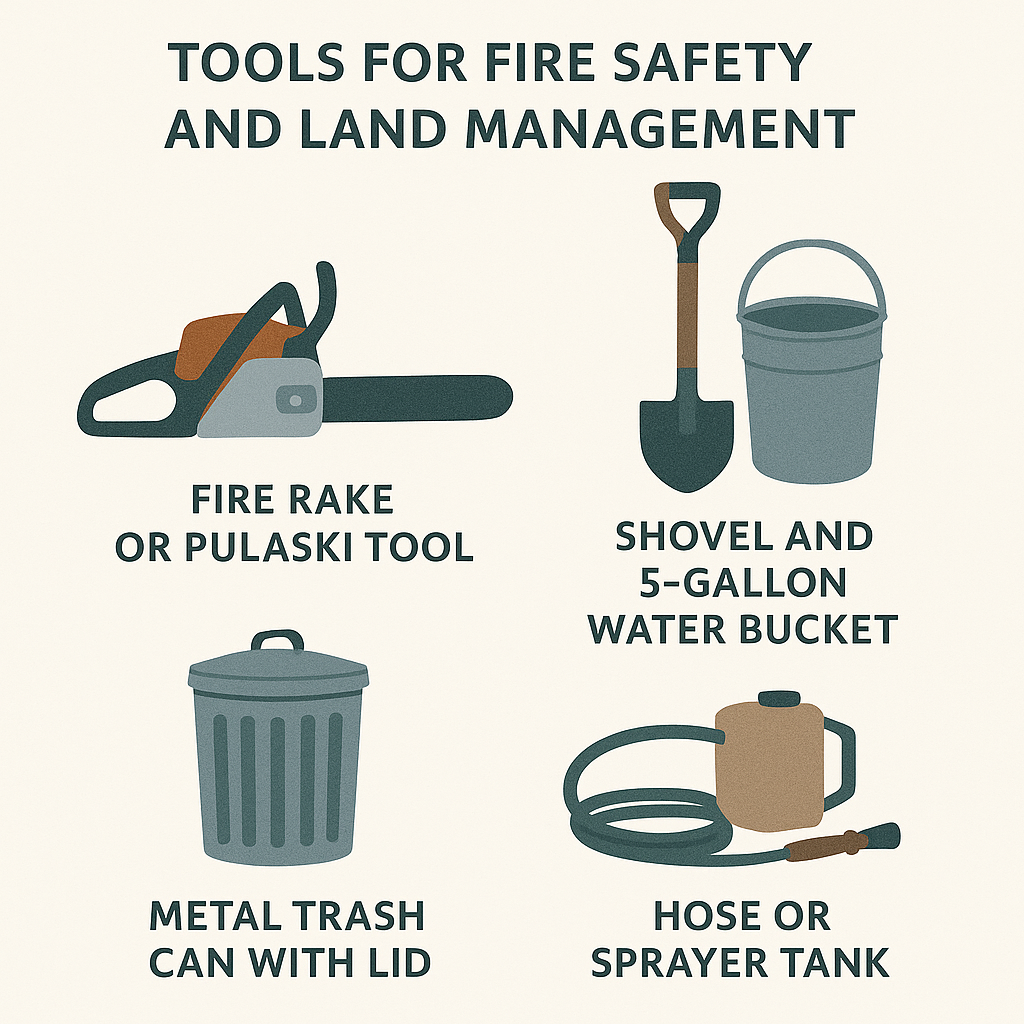 Fire Rake or Pulaski Tool – Clear vegetation or create fire breaks.
