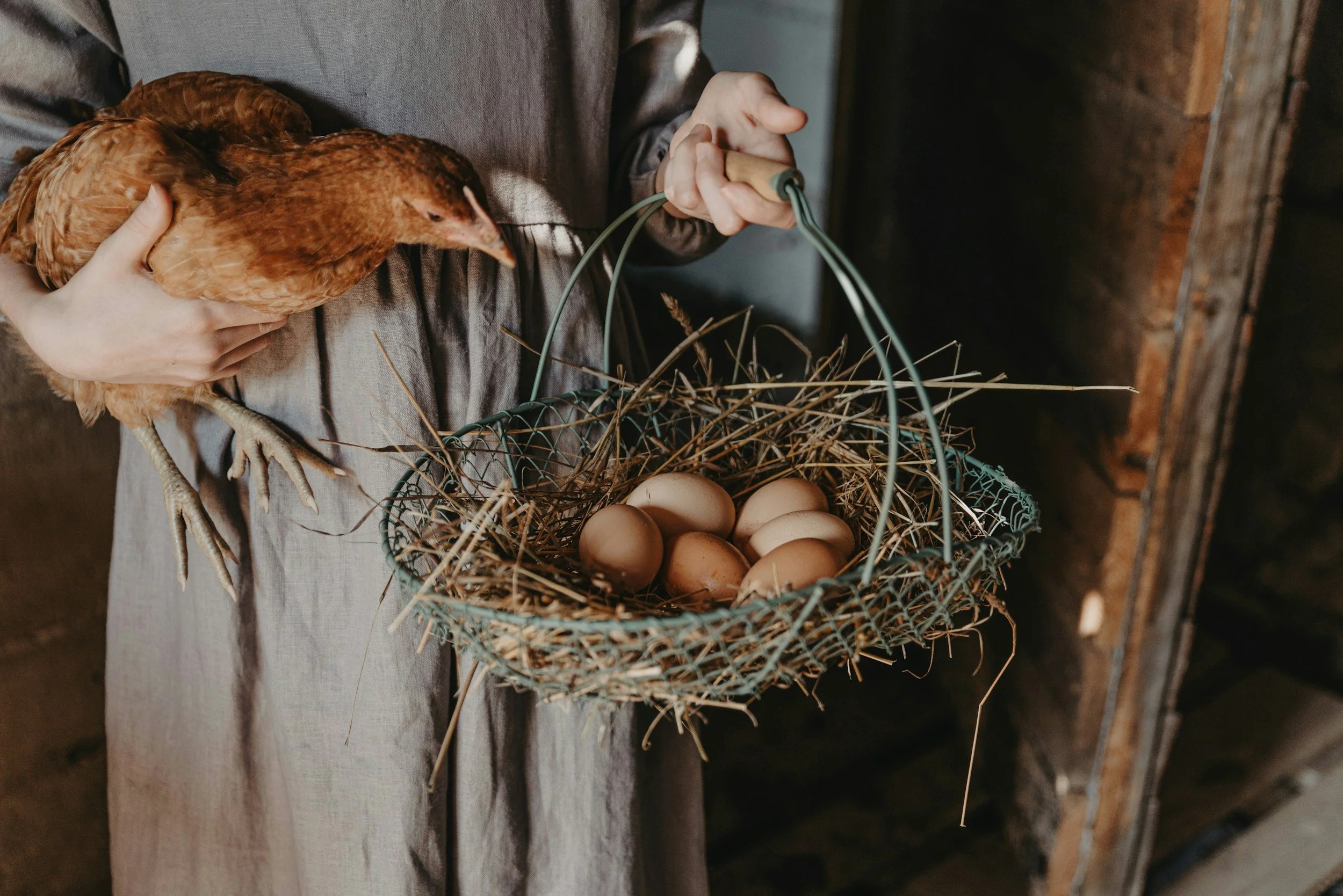 Chickens: Eggs, compost material, pest control.