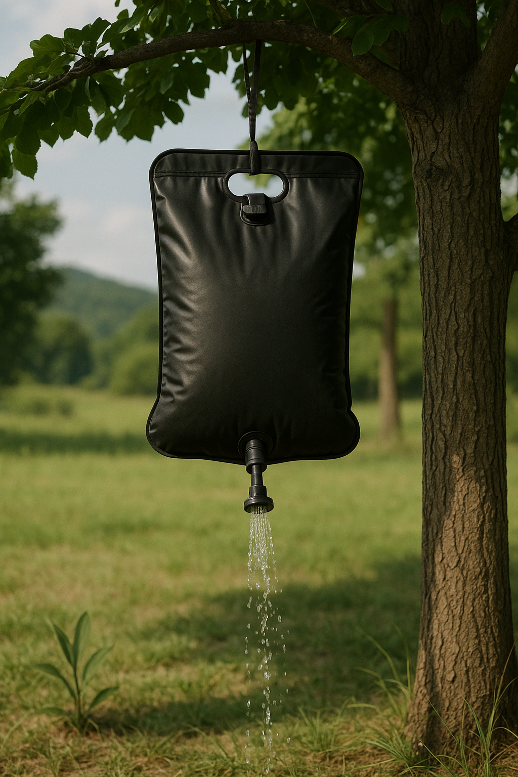 - Tree branch, tripod stand, or overhead support: To hang your shower.