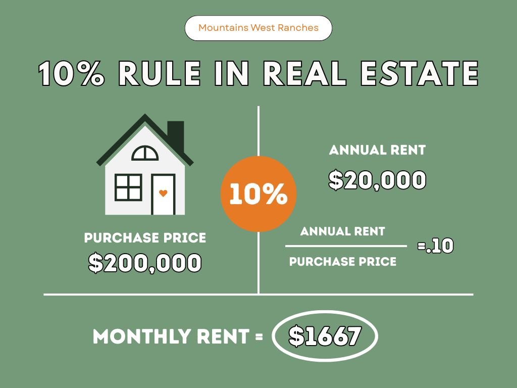 The 10% Rule can also apply to land purchases, though in a slightly different way. Since raw land doesn’t generate monthly rental income, investors typically evaluate it based on appreciation potential, resale margins, or leasing opportunities. For example, a 10-acre property purchased for $50,000 that increases in value to $55,000 within a year technically follows the 10% Rule in terms of return.