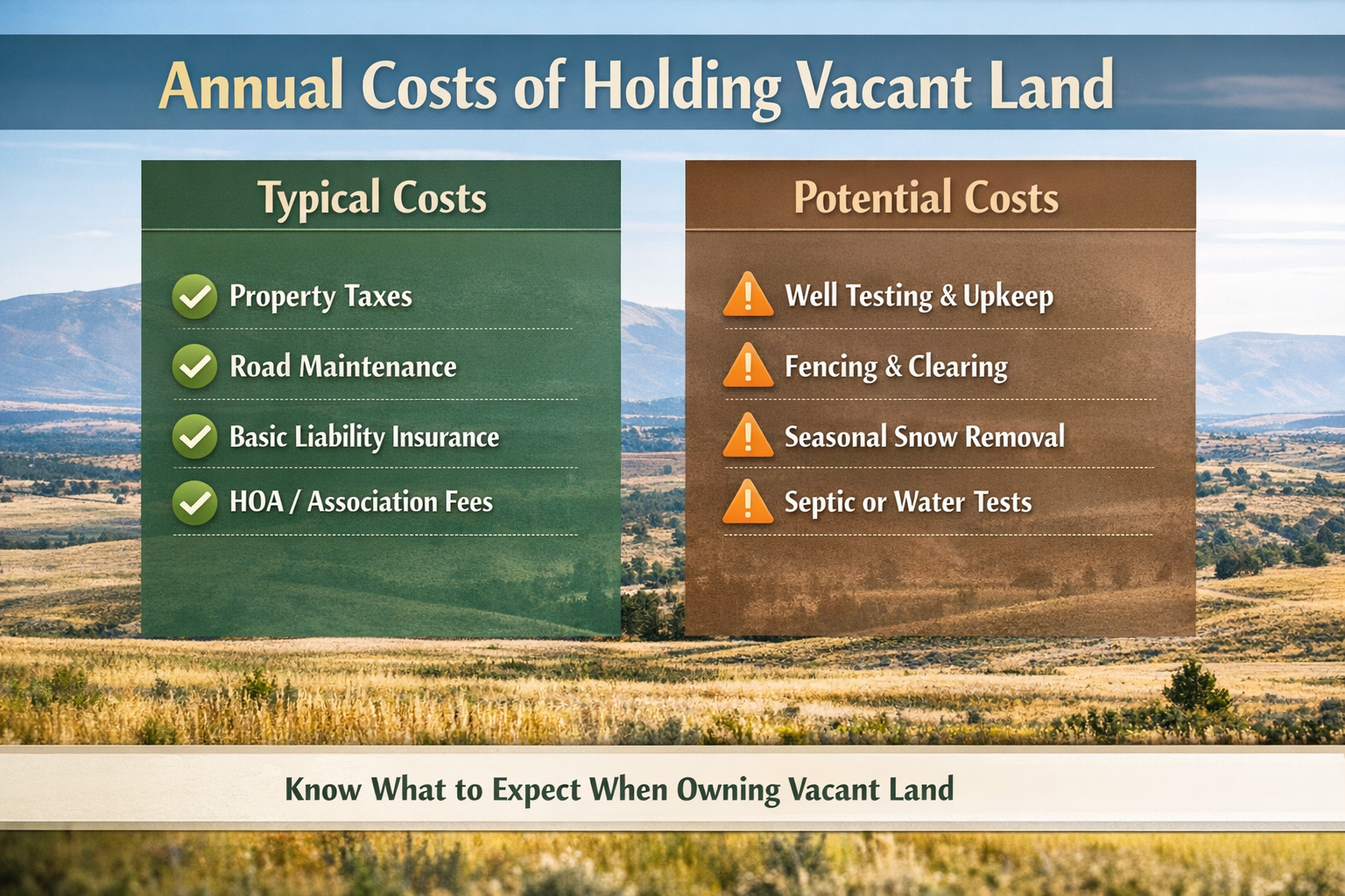 Holding vacant land comes with ongoing expenses, but they are often modest and manageable. By understanding property taxes, access responsibilities, and optional costs, landowners can make informed decisions and enjoy the benefits of land ownership without surprises.