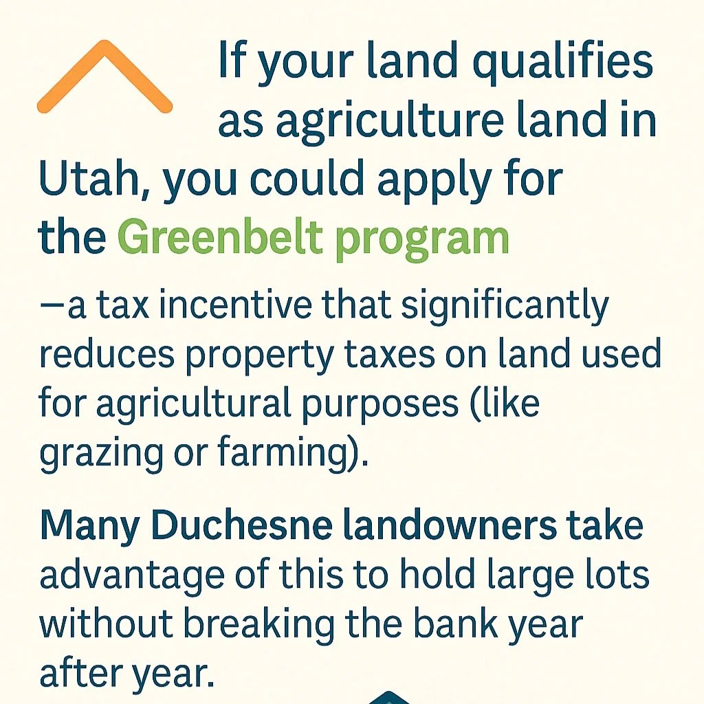 The Greenbelt Act allows certain types of agricultural land in Utah to be taxed based on its productive use instead of market value. This dramatically lowers annual tax bills for qualifying properties.